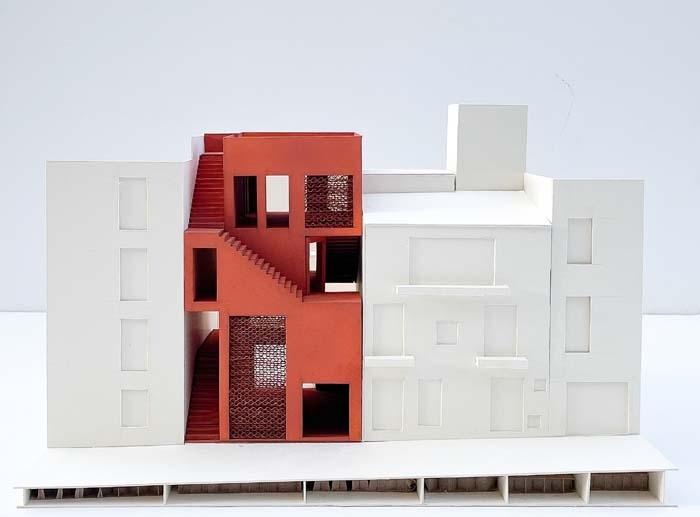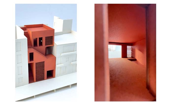 This project was set to create a hairdresser with additional living for the owner, within a gap in between buildings. the project takes inspiration from the extruded clay brick that is readily available throughout Mallorca.