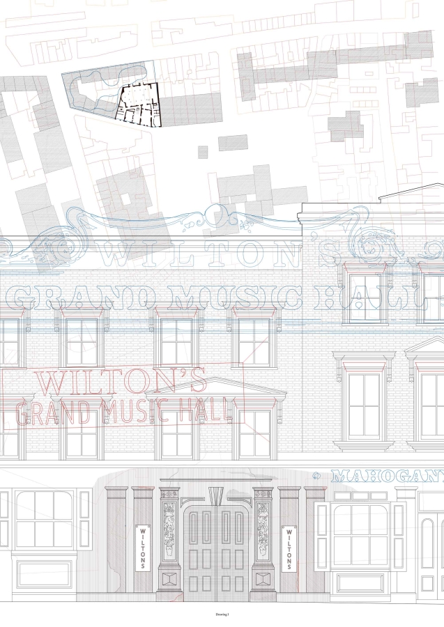 Model displaying entrance and venue in Wilton's Music Hall, London