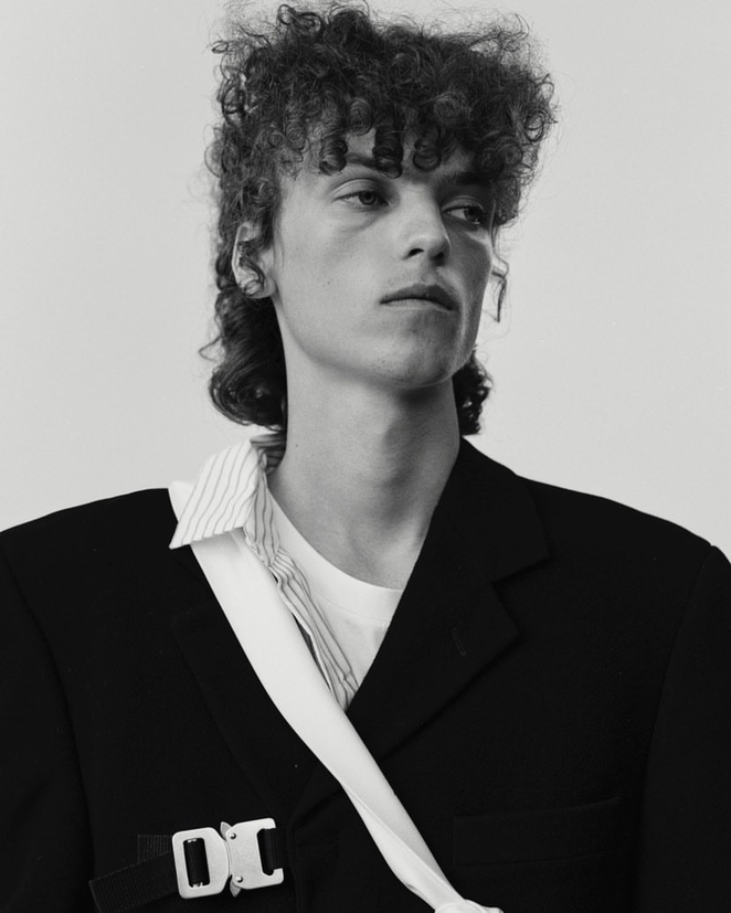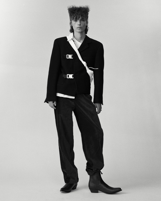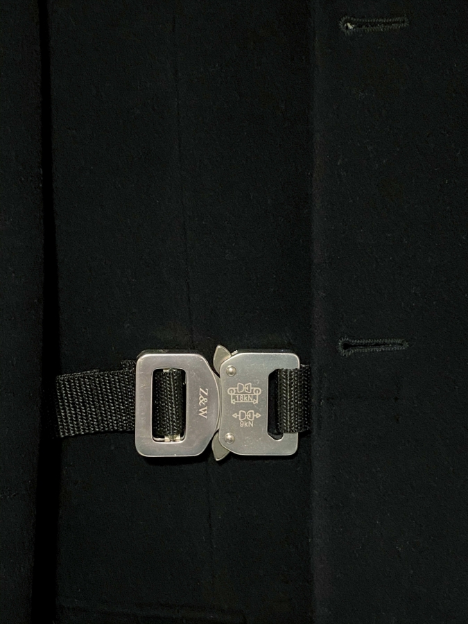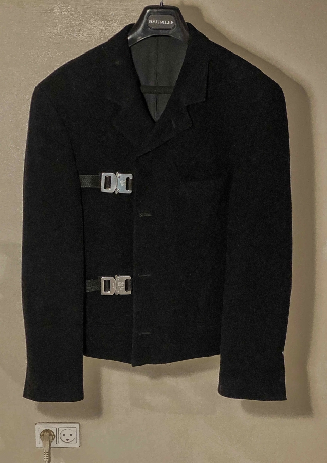 Wool blazer with aluminium QR buckles, size M. Cropped fit